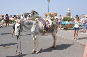 Wyjazd ok. 9.00 po przeprawie promowej (prom płynie ok. 0,5 h) i dotarciu na Furteventure następuje przejazd autokarem po wyspie. Odwiedza się miejscowości La Oliwa, Betancuria, a także park Naturalny Wydm Corralejo, który jest jedną z najważniejszych atrakcji wyspy. Po drodze punkt widokowy wraz z karmieniem wiewiórek..