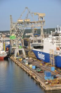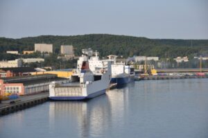 Port Gdynia widziany z pokładu promu płynącego z Karlskrony